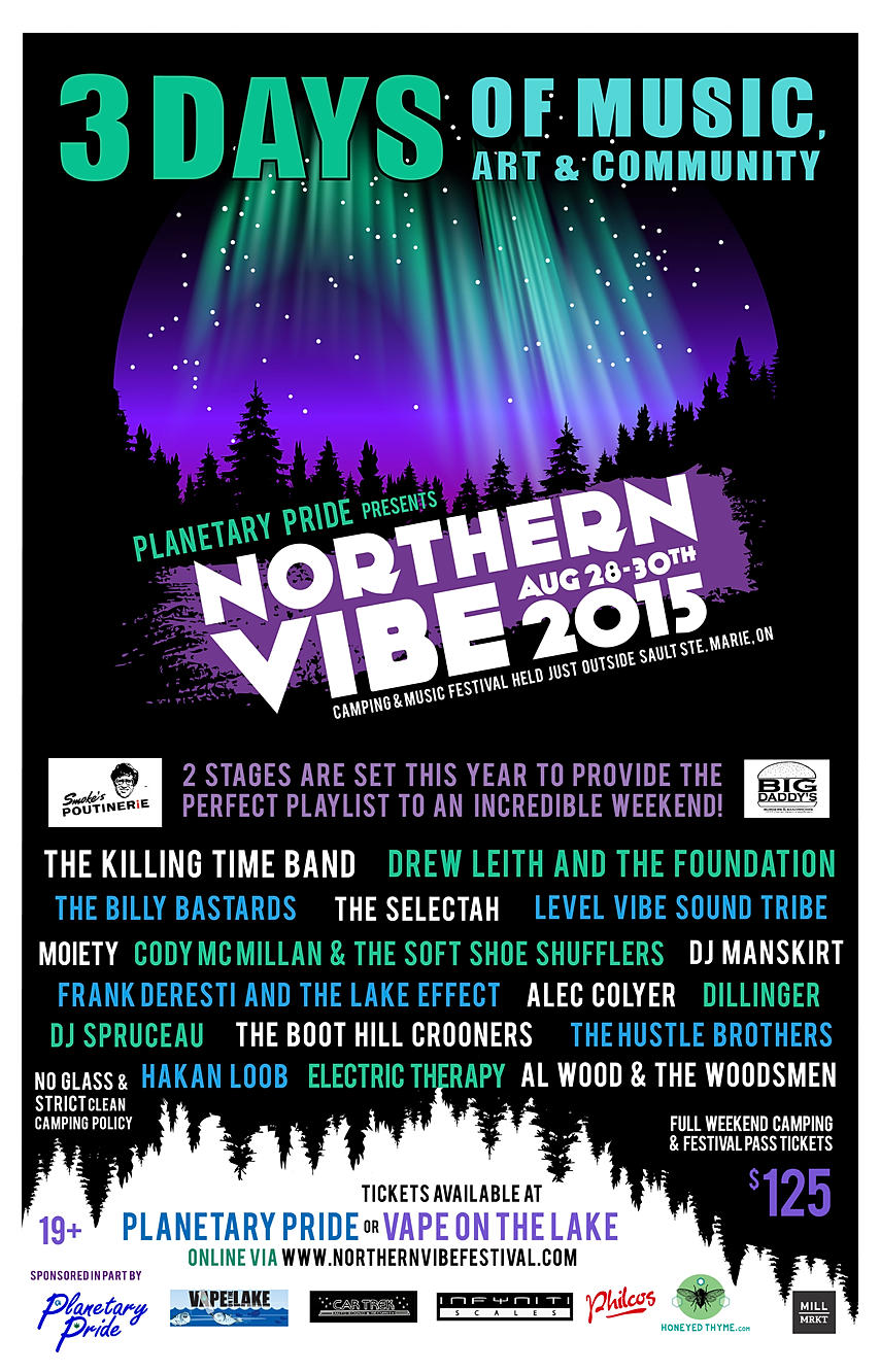 And finally, local/Wawa keyboardist and busker Damjan "Spider Fingerz" Binda will open Saturday's lineup, if there are no late notice changes. As well, Sunday's action on the Forest Stage will be devoted to group jamming, drum circles, and open mic performers, so keep that in mind, as you never know who'll be playing! Also, keep an eye out for fire spinners, hula hoopers, yoga, and art installations during the festival's duration. Tickets are $125 for the full weekend with no single day rates advertised, while there are group rates if you have a party of 10 people. Tickets can be bought locally at Planetary Pride on Queen Street East or online at this link, and while The Northern Vibe Festival is a 19+ event, kids and pets can come (if absolutely necessary) with an adult attendee if you follow the instructions at this link (which includes has full info on festival guidelines.) For full posted details on The Northern Vibe Festival, visit the above links!